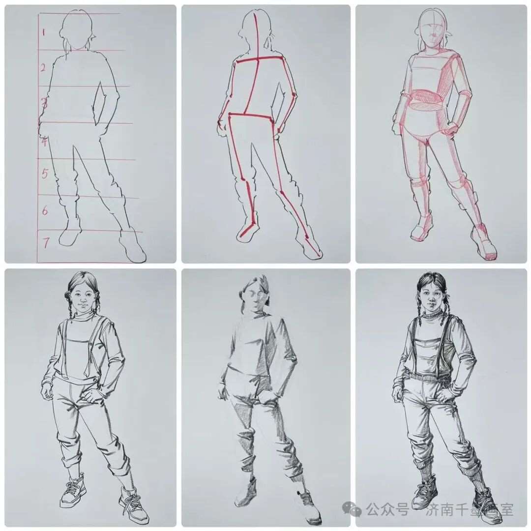 二是不能看一眼画一眼,整体结构要把握住,要做到心里有数后再下笔画。三是学会控制画面,学会取舍,抓主要的能够表现对象特征的进行刻画,不要面面俱到;大的动态关系要明确 ,重心要稳;头、手、脚应生动刻画。
